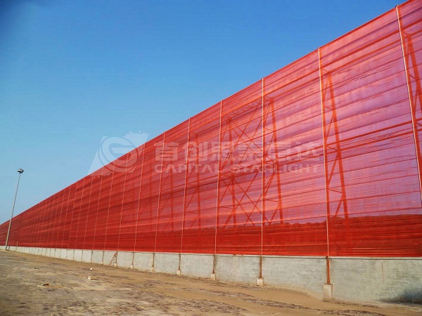 擋風(fēng)抑塵網(wǎng)應(yīng)用于煤炭、礦石、灰沙等露天開采、堆放、裝卸等作業(yè)場(chǎng)所,可抑制粉塵散發(fā)。